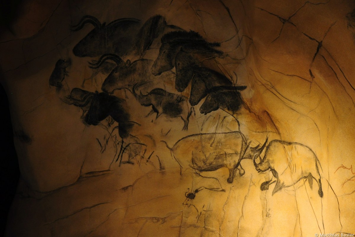Tip: Im Bayerischen Wald, nahe des Nationalparkzentrums Falkenstein an der Bahnstation Ludwigsthal gibt es eine sehenswerte Mini-Steinzeithöhle mit einigen Motiven aus der Grotte Chauvet. Dort entstand auch das dritte Bild oben, das eine Nachbildung eines bekannten Motivensembles zeigt.